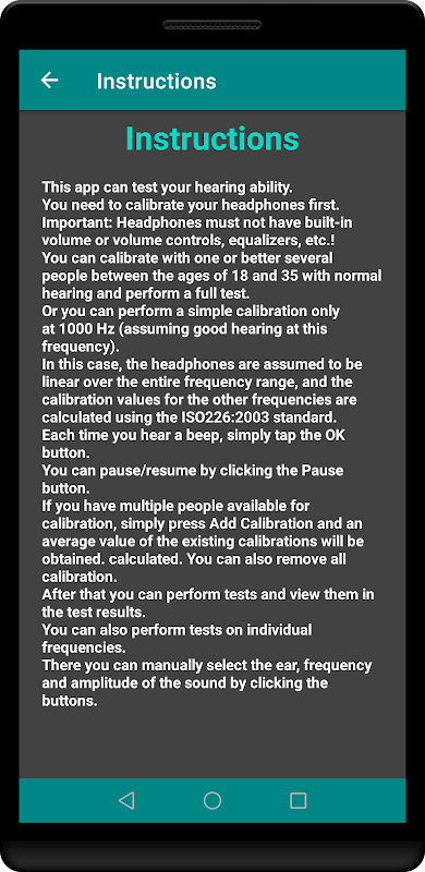 - 使用 ISO226:2003 標准在 1000 Hz 下進行簡單聽力測試。