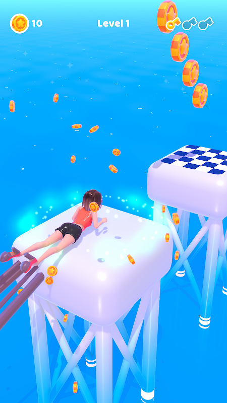 Stretch your heels so that you can go on the other platform. Watch out! If your heels is unexpected long or not long enough, you are going to fall down.