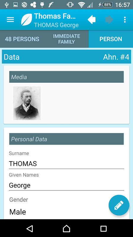 Heredis vous propose des fonctions essentielles pour emporter partout sa généalogie sur Android : l'envoi de son ficher Heredis, la visualisation, la navigation, l'ajout d'individus, l'édition des dictionnaires lieux et sources, affichage des cartes, ajout de photos depuis l'appareil photo...