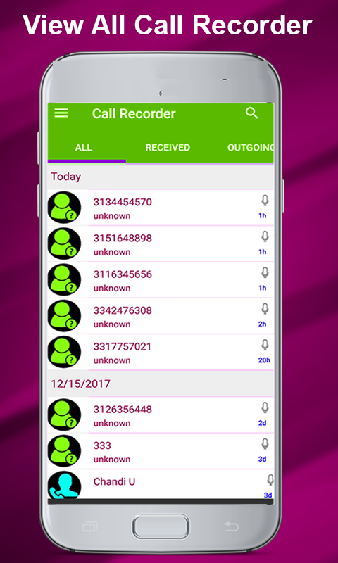 Hidden call recorder- all call recorder records all incoming or outgoing calls for free with great smoothness it is one of the best recording app. Now days it is very important to observe your kids for misusing mobile phones and it is very difficult to do it manually. But with call recorder 2017 now its so easy to record phone calls while working in a normal routine. This is one of the best call recorder for android for those of you who want to have phone calls recorded for different purposes. You would want to monitor your kids or younger brother that what he does with his phone and want to have an app. So you have got a right choice to choose call recorder pro. App has some great phone recorder features which makes it second to none event though their are many app to record phone calls but this one is special. Monitoring your youngers is now so easy just download this great voice call recorder and observe them for misuse. hidden recorder makes it very easy just open the application and it will start to record phone calls with ease and pace. To have a recorder call of such quality take some finding because there are so many audio call recording apps on store . Just with one tap the services will be started to record phone calls very effectively and efficiently.