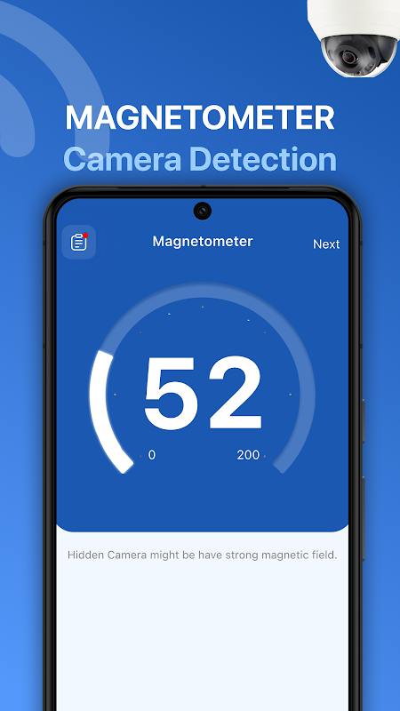 🧲 磁場偵測:將應用程式移至您懷疑的任何裝置附近,例如淋浴間、花盆或更衣室中的鏡子。該應用程式分析設備周圍的磁活動。如果磁性活動與相機的磁性活動類似,應用程式會發出蜂鳴聲並發出警報,以便您進一步調查。