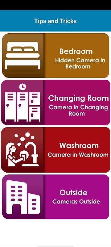 此應用程序的其他部分包含一些技巧,這些技巧可幫助一些壞人將秘密相機秘密地放置在浴室等私人場所中