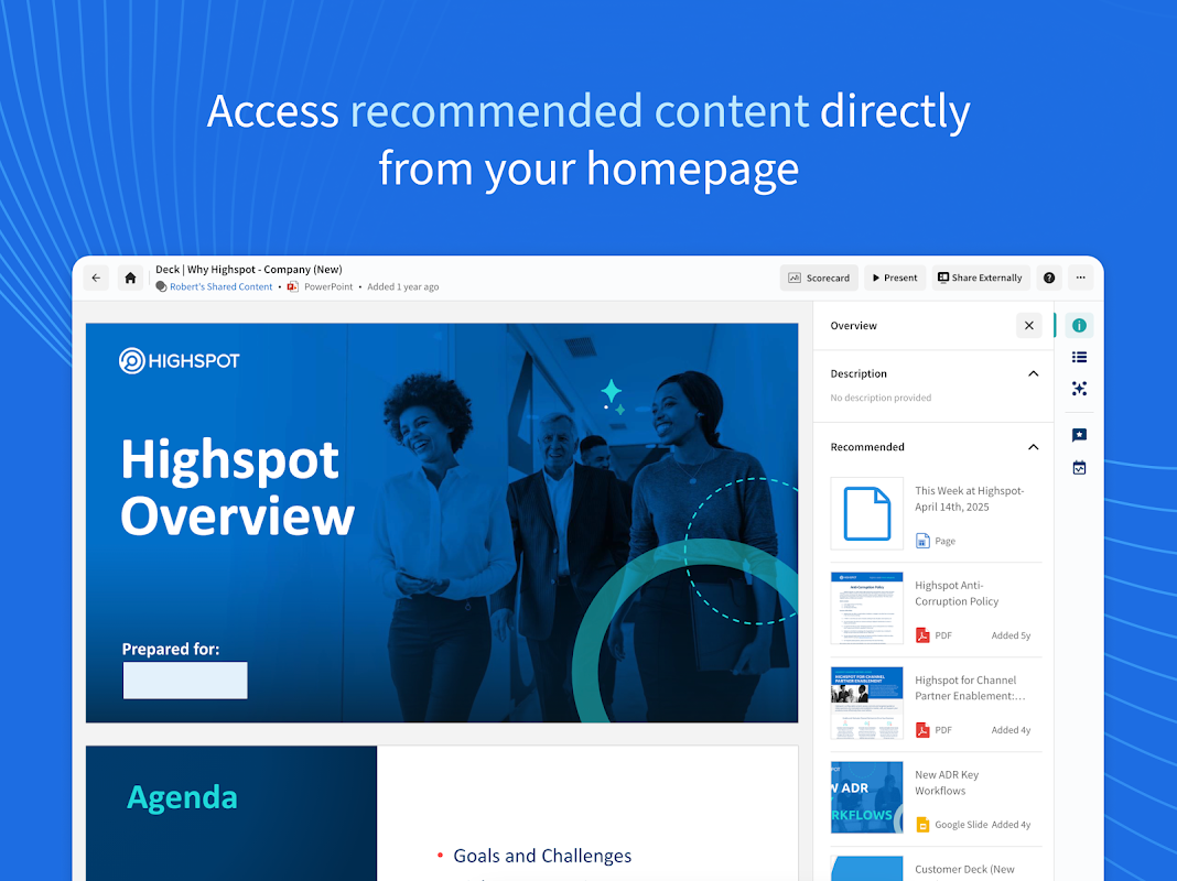 無論您身在何處,都可以在任何設備上獲得 Highspot 的強大功能。使用我們專為移動設備設計的原生應用程序,與買家分享內容並提高您的技能。