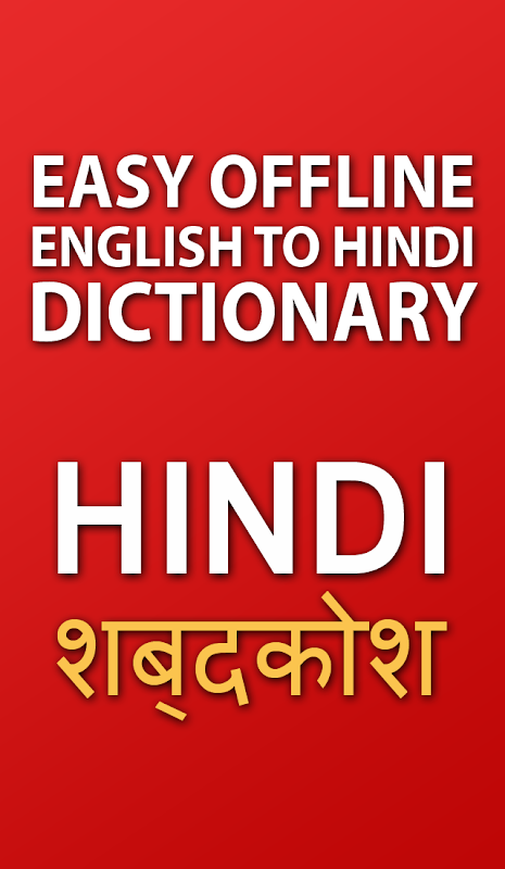 Easily translate word from english to hindi using Dictionary. Now translate english words to hindi easily on mobile phone. It has largest collection of english words in dictionary. This dictionary shows exact meaning along with nearby meanings. See meaning with synonym, antonym and right grammar usage. Then Easy English to Hindi Input keyboard will help you to write in Hindi by just writing in roman English as it is English Hindi keyboard so it will convert that roman English in Hindi