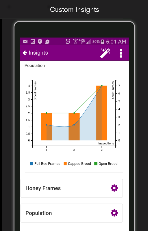 HiveTool Mobile Insights isn't a collection of carefully selected canned graphs, it's a dynamic system of analysis tailored by you. The HiveTool Mobile Insights Wizard will guide you through chart creation - you will create analytical graphs to visualize your hives and apiaries with complete ease.