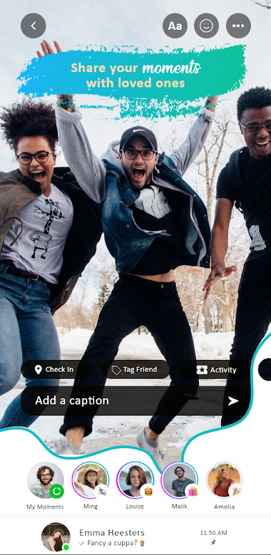 聊天:交互式聊天屏幕可讓您在 1-2-1 或群聊中與您的朋友和家人保持聯繫,並具有大量功能,如反應、貼紙、音頻和視頻消息、媒體共享、投票等
