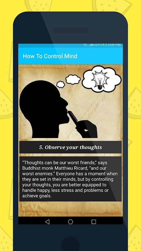 This APP describe benefits of mind control and how we distract ourselves when the negative voice gets too loud.