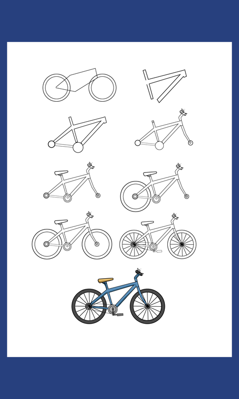 如何畫自行車應用程序只有圖像;這不是遊戲。它以指導、技巧、想法甚至是如何使用某些東西的教程的形式出現。