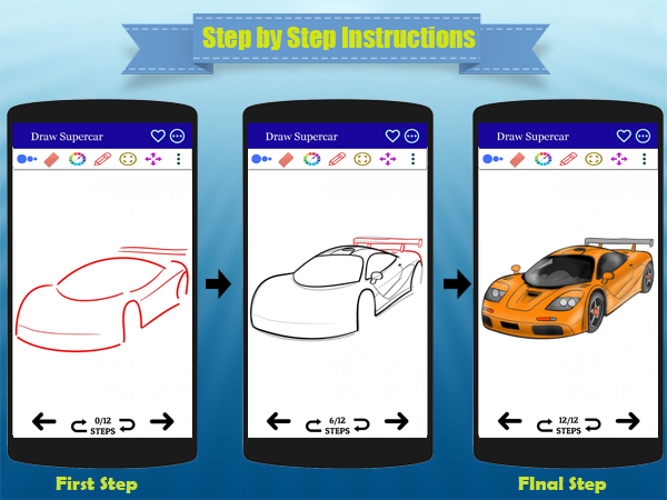 還在等什麼?下載並安裝此藝術繪畫藝術應用程序,以學習如何逐步繪製跑車草圖。下載此免費繪圖教學後,您將能夠以簡單的方式繪製您最喜歡的跑車。