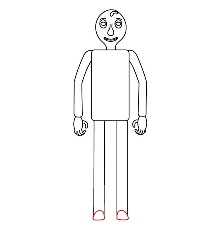 巴爾迪(Baldi)是遊戲的對手,該遊戲躲藏在普通的教育遊戲中,但實際上卻是恐怖的。 怎麼畫呢? 巴爾迪(Baldi)是個造型欠佳的角色。 這是一個瘦長的男人的模型,他的手指長而瘦,紅紅的嘴唇,皮膚呈淺棕色,頭上長著一根頭髮。