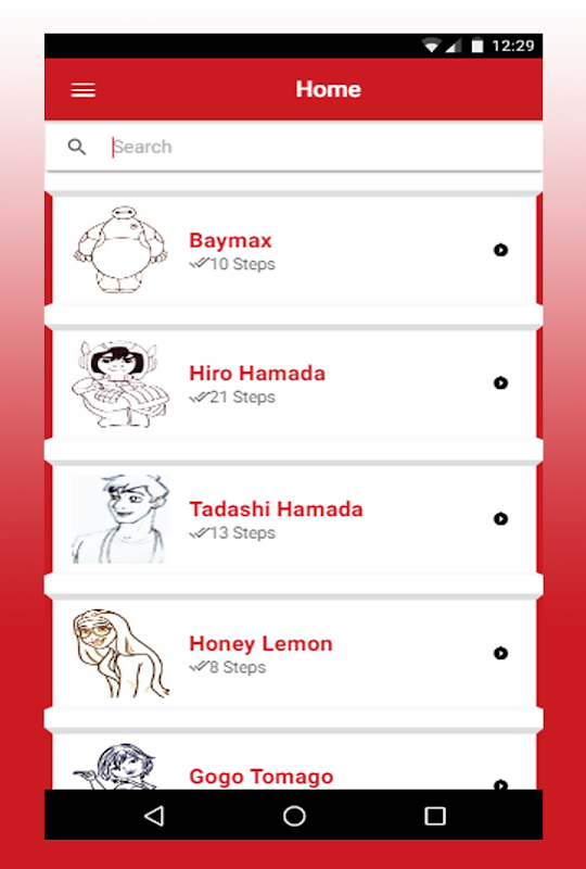 In this app you'll learn drawing big hero step by step, and big hero drawing will become very easy as you have only to follow the steps so you can learn how to draw big hero 6 step by step.