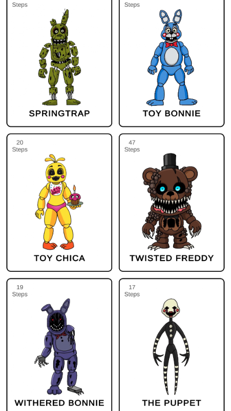 透過在如何繪製 FNaFfs 教學應用程式的幫助下進行繪畫,您不僅可以放鬆,還可以提高您的技能。畫!感覺像藝術家!