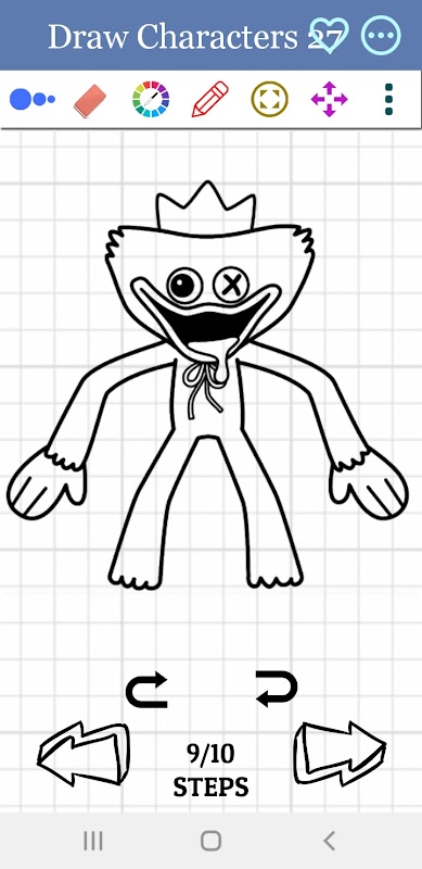 如何繪製 Huggy Wuggy Easy 是一款應用程序,即使是非專業人士也可以通過我們的分步指南學習繪製怪物。每個角色需要完成 5 到 15 個步驟。您還可以使用工具在應用程序中繪製角色,例如鉛筆、橡皮擦、移動、縮放、顏色等工具。