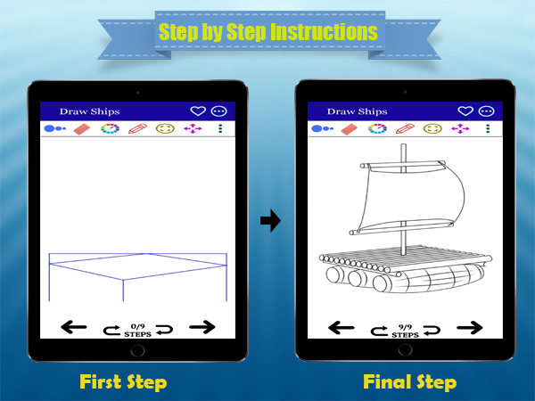 雖然你不知道如何畫船,但不要擔心。我們的美術繪畫教程由專業美術老師設計。我們在此應用程序中提供的分步繪圖說明清晰易懂。因此,學習如何畫船不會有任何困難。