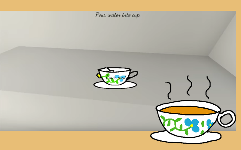 In How To Make a Cup of Tea you spend your time making a good old British cup of tea, then serving them to someone through a mysterious door.
