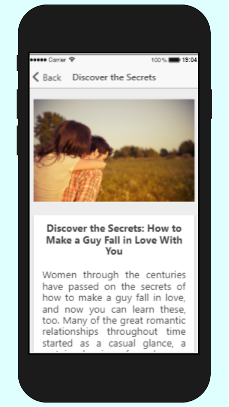 如何使一個男人愛上你是幫助女人發現進行必要的東西給你的應用程序,只是需要一個有趣的談話,並讓自己的女人味女孩誰將使愛一個人愛上你,他是男人你的夢想,你崇拜他。在你身邊,現在要他但不幸的是,你還沒有他。你願意盡一切可能讓他追你,想你,吸引到你,愛你瘋狂地下降,但它似乎是一個非常艱鉅的任務。