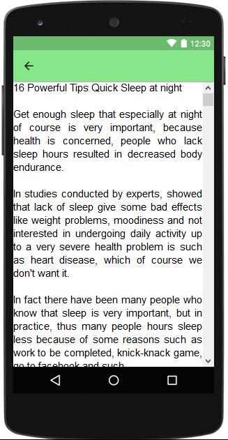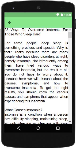 On this app you will find several tips how to get sleep with easy, below are the contain of How to Sleep Easily app :