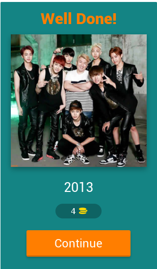 最受欢迎的kpop组是韩国。 Bangtan Boys或BTS - 赢得世界声誉的人。 RM,Chongquk,Jin,Chimin,Shuga,Jay Hope和Wie(Kim Tehen)。 你必须说出BTS首次亮相的日期,以及从Bangtan的kupp小组了解每个偶像的一些个人信息。