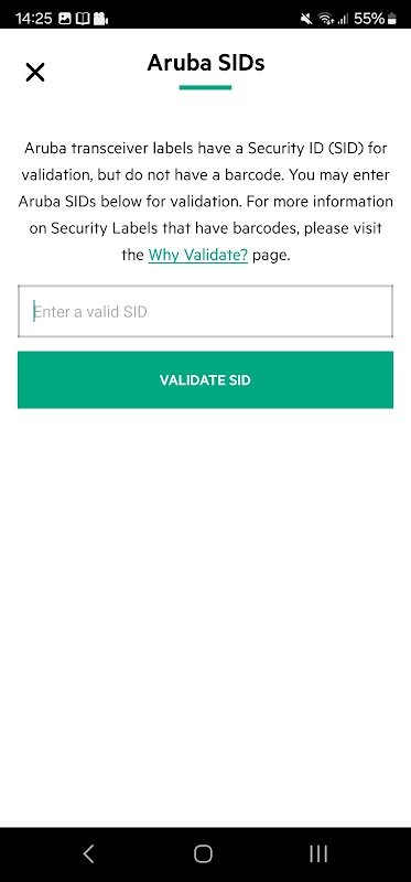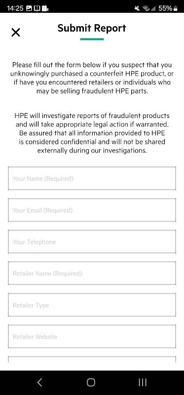 HPE 零件驗證行動應用程式可讓您方便地驗證 HPE 安全 ID,以確認您購買的是正品 HPE 零件。該應用程式將指導您完成額外的目視檢查,或直接聯繫 HPE 的鑑定專家。如需了解更多關於 HPE 安全標籤和 HPE 零件驗證應用程式的信息,請訪問 www.hpe.com/products/validate。