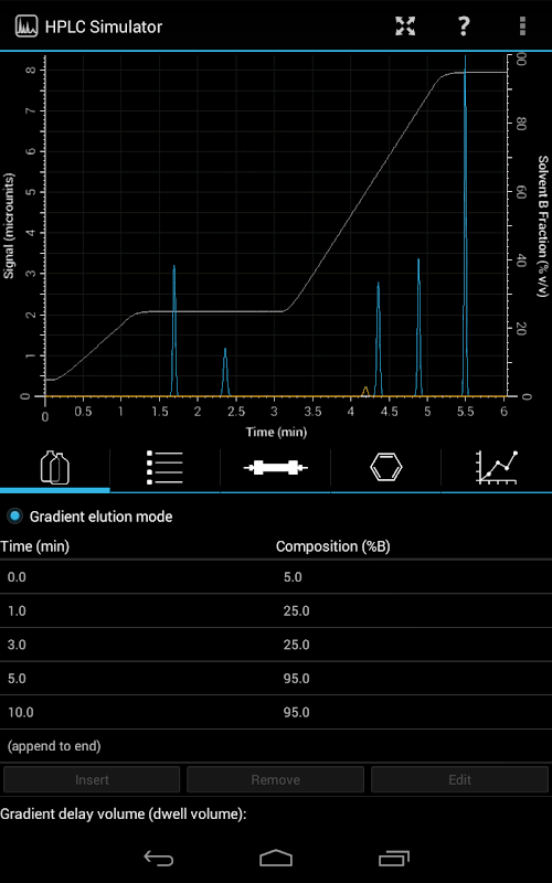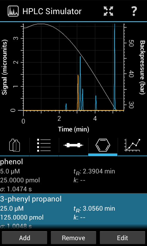 HPLC Simulator is a sophisticated (Ultra) High-Performance Liquid Chromatography simulator for your phone or tablet. Explore a wide range of chromatographic parameters and see their effects on a simulated chromatogram.