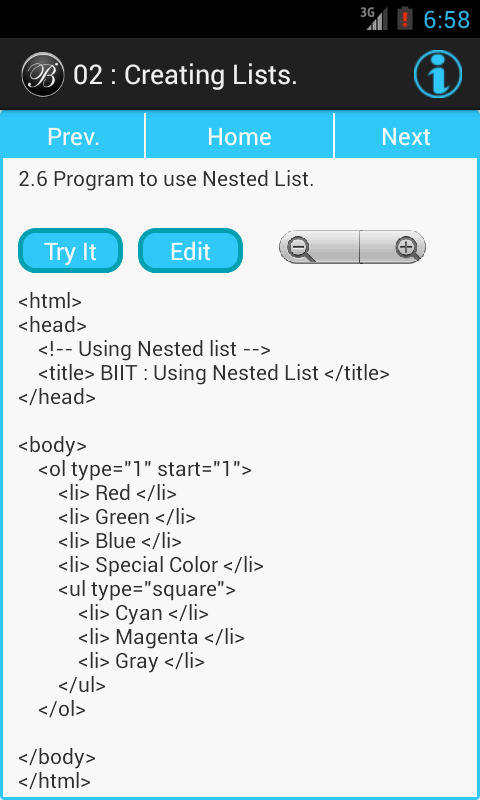 為了簡單的方法,這是每個人都容易理解。此HTML教程應用程序是很好的