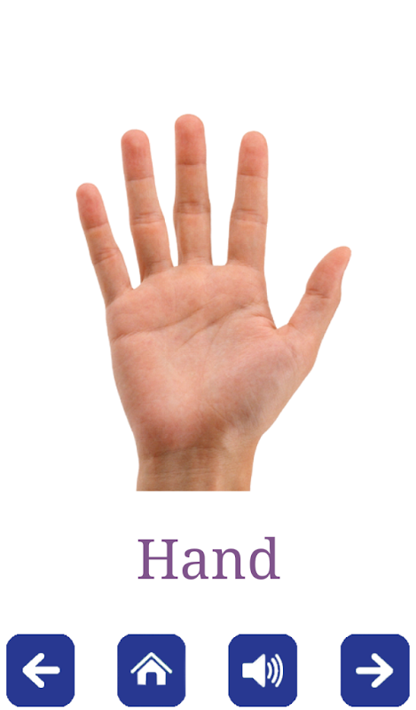 2.Auto Play the human body part pronunciation as card appears on screen as well as repeat the sound of on speak button click.
