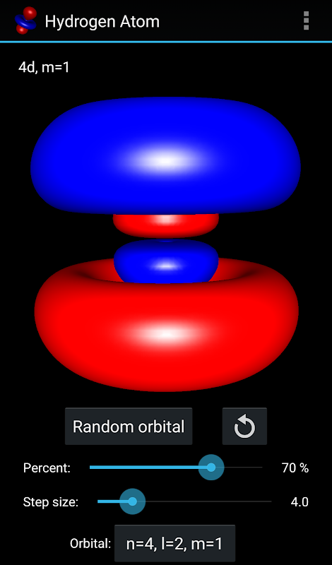 此應用通過繪製在OpenGL電子概率密度的橫截面的表面,並使用移動立方體算法可視化3D中的氫原子的電子軌道。
