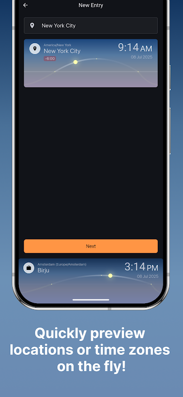 使用我們的彎曲日光滑塊輕鬆可視化時區,使用互動式滑桿預覽各個位置的時間,並使用顏色和圖標自訂實體以進行個性化組織。