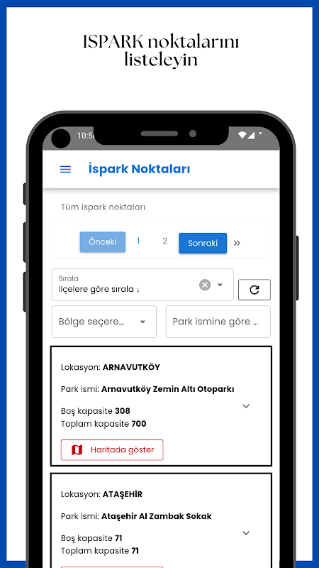 按地區查看 Isparking 點:根據您位於伊斯坦布爾不同地區的位置過濾 Isparking 點。輕鬆專注於您需要的區域。