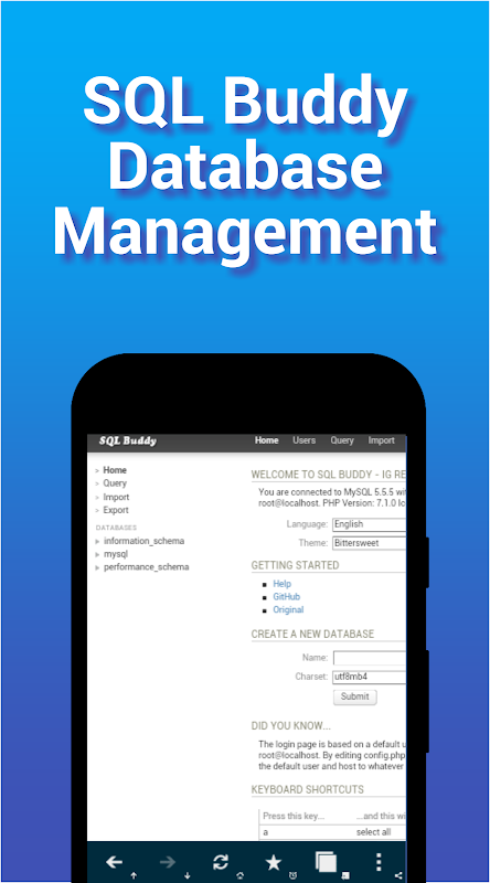 A PHP development package for Android, turning your device into a web and database server, suitable for building and running dynamic web sites.