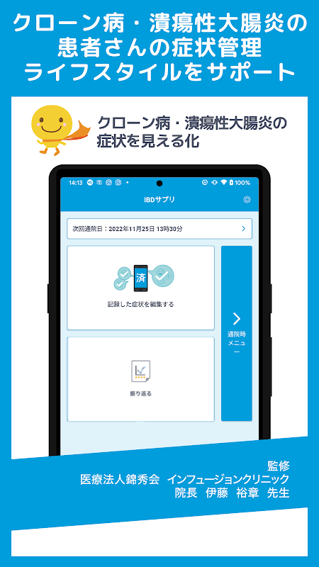 IBD Supplement是一款記錄克羅恩病和潰瘍性結腸炎患者每日排便次數和進餐有無,並支持檢查時與醫生溝通的APP。