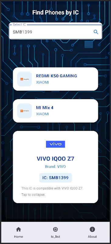 想知道哪些手機使用特定的 IC?只需選擇晶片代碼,即可找到相容的手機型號——非常適合進行更換計劃。