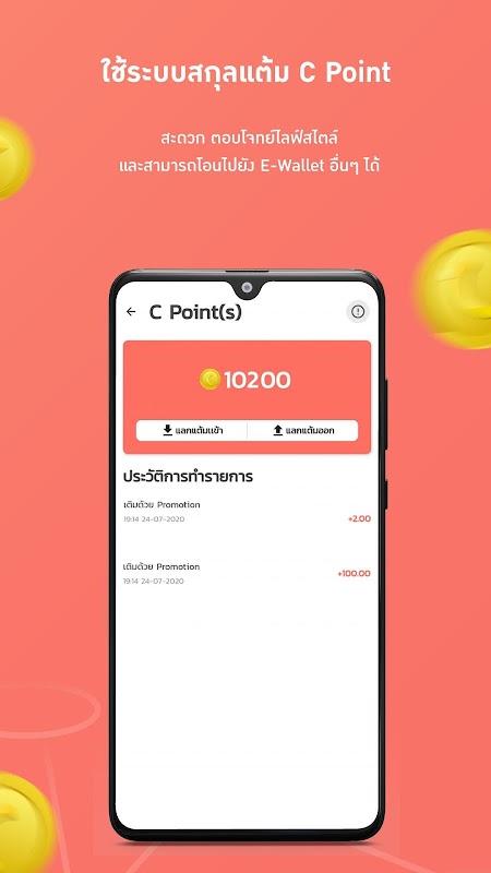 iCHOB มีระบบสกุลแต้ม (C Point) เป็นของตัวเองเพื่อให้ง่าย สะดวก ตอบโจทย์ไลฟ์สไตล์ที่พร้อมจะเปลี่ยนเป็นรายได้ ไม่ว่าคุณจะใช้ซื้อสินค้าหรือบริการ และโอนไปยัง E-Wallet อื่นๆ ก็สามารถทำได้เช่นกัน