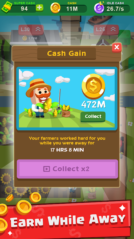 🚜即使您處於離線狀態,也可以讓您的快樂工作者為您創造現金!