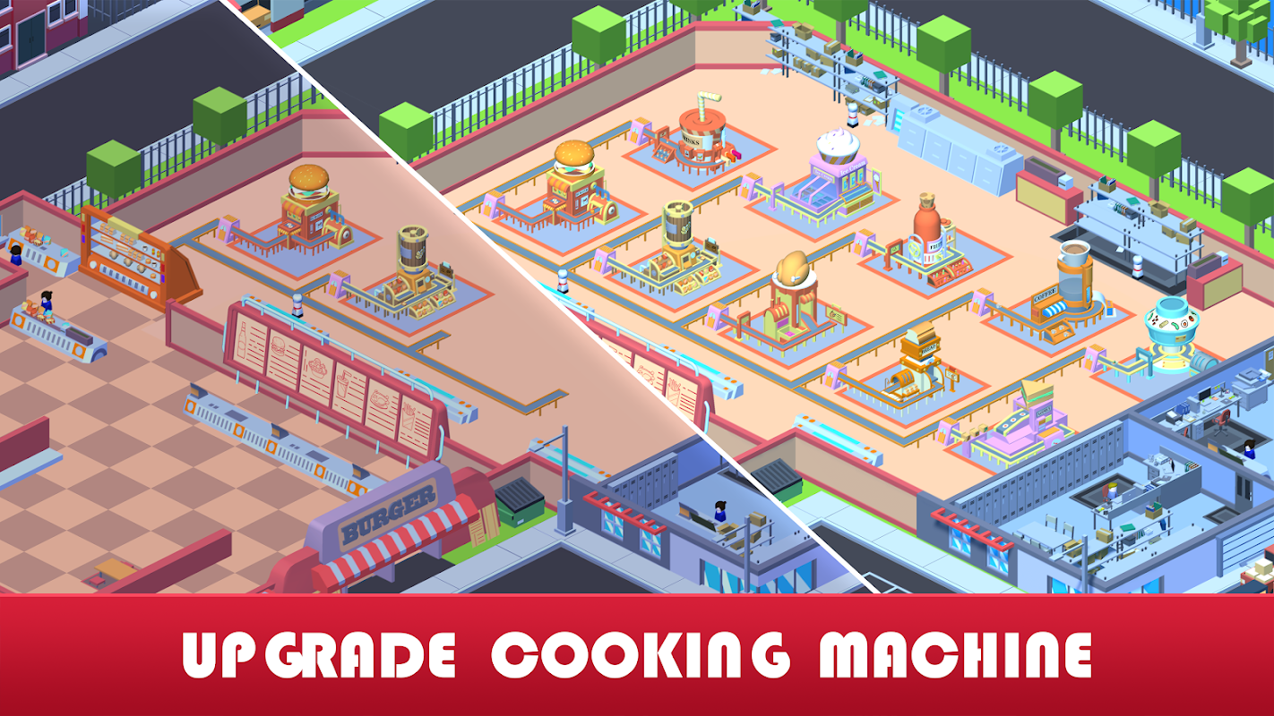 您可以在餐廳建造新的烹飪機,並對其進行升級,以向客戶提供更多的食品,並讓他們花更多的錢!