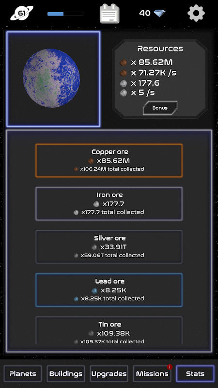 通過升級您的礦山和生產來解鎖新行星並解鎖新礦石。發現大量不同的礦石,這些礦石將幫助您升級您的採礦帝國並獲得更多資源!