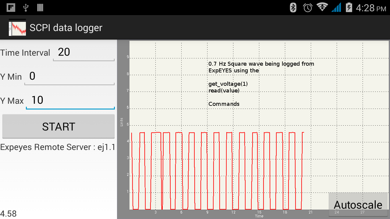 該應用程序將首先發送一個標識查詢(* IDN?),然後開始繪製響應