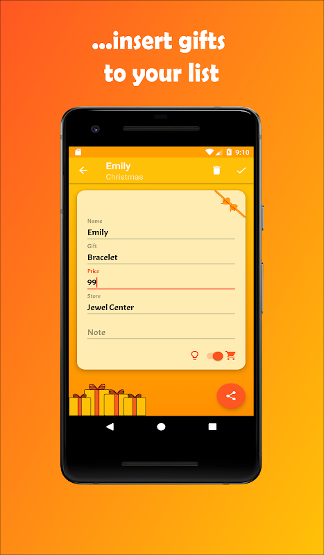 - 與您的朋友和親戚分享想法或禮物的詳細信息;