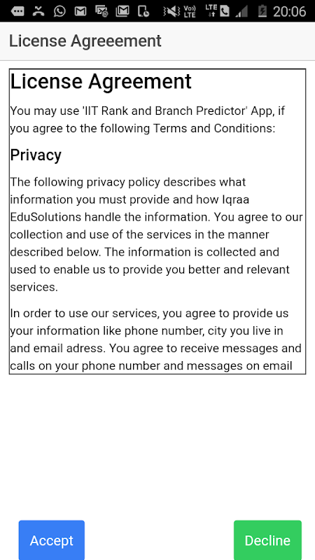 Iqraa EduSolutions帶來了“IIT JEE先進行列和分支預測”應用。該應用程序預測JEE中提供基於JEE中的高級預期分數學生的IITs先進行列,並計劃(分支機構)。學生們被要求輸入以下內容: