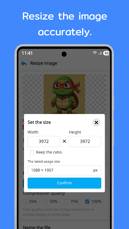 使用此應用,您可以輕鬆調整圖像大小、縮小照片尺寸並壓縮文件,同時保持清晰的畫質。