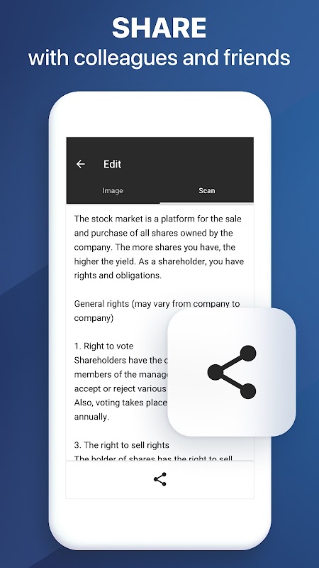Image to Text: OCR Scanner App is your mobile document scanner and text editor. Scan any document, convert easily any picture to text and share it via social networks.