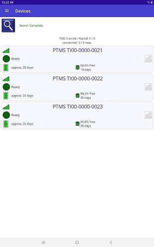 PTMS 3 完全密封,可防塵防水,因此使用藍牙 4/5 進行通訊。在行動裝置上啟用位置追蹤以在測量開始時告知 PTMS 3 實際地理位置和方向也是有益的。
