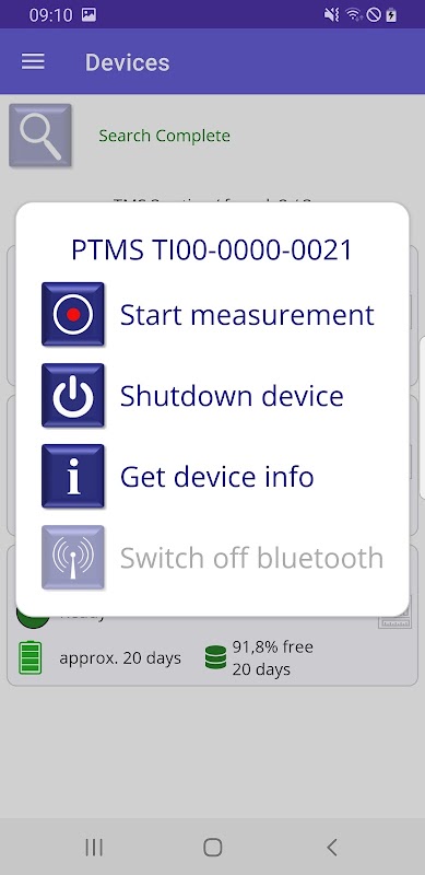 該應用程式的主要功能是透過正確的配置啟動和停止 PTMS 3 的測量。