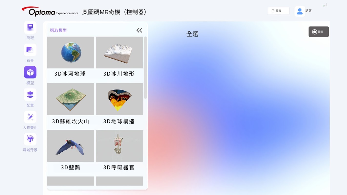 軟體介紹:https://www.sdc.org.tw/product/optoma-mr%e6%95%99%e8%82%b2%e7%96%8a%e5%b1%a4%e7%b3%bb%e7%b5%b1/