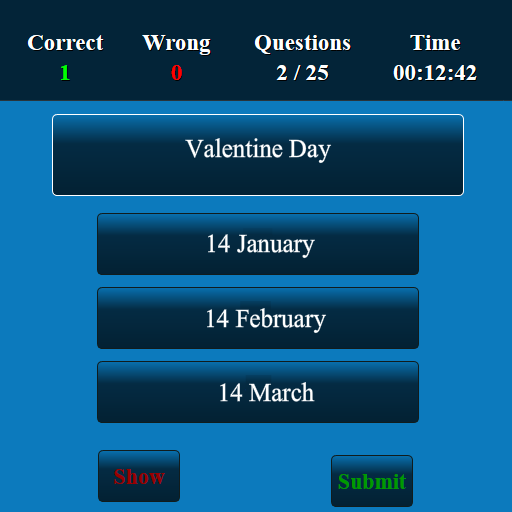 這個重要日期日期應用程序的開發旨在測試您的重要日期日期的技能。這個程序有10,000多個選擇題和答案。這個重要日期約會測驗應用程序適合所有較低,中級和較高水平。所有級別的問題都會隨機顯示。用戶可以提高“重要日期日期”知識,並且可以在高中,大學和競技水平考試中取得良好的成績。這是一個免費版本,您可以在離線和在線狀態下使用。