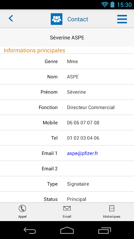 · Effectuer un appel directement depuis l’application: téléphonez vos contacts directement depuis INES.Mobile. L’application permet de choisir entre un appel standard ou via Skype.