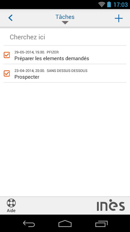 INES CRM vous présente l'application INES.Mobile permet d’accéder et de travailler avec les informations de votre base INES CRM depuis votre portable ou tablette Android. Vous pourrez ainsi gérer vos contacts (clients, prospects, fournisseurs) vos tâches, rendez-vous et appels de votre base INES depuis votre terminal mobile Android.