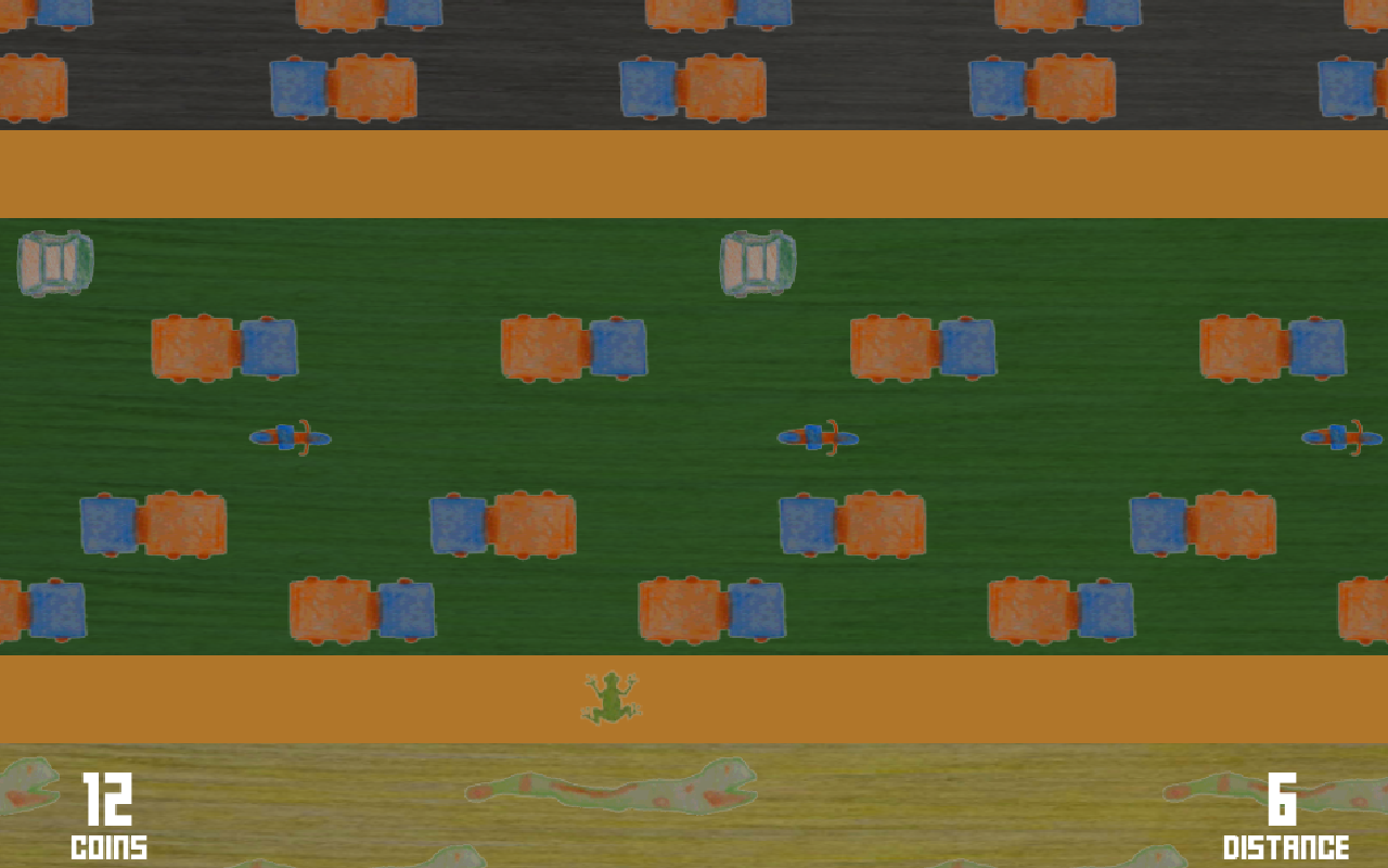 Similar to last year, we looked at a famous game from history and looked at remaking it with a twist and their hand-drawn graphics. So this time we created an infinite version of Frogger and added new environments.