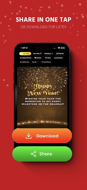 數百個範本:探索大量專業精美設計的範本庫,涵蓋早安問候、晚安祝福、勵志語錄、靈修訊息、節日祝福(排燈節、開齋節、聖誕節、生日等)等等。一鍵即可完成所有操作。告別繁瑣的圖片編輯和在社群媒體上重複發布相同狀態的煩惱。