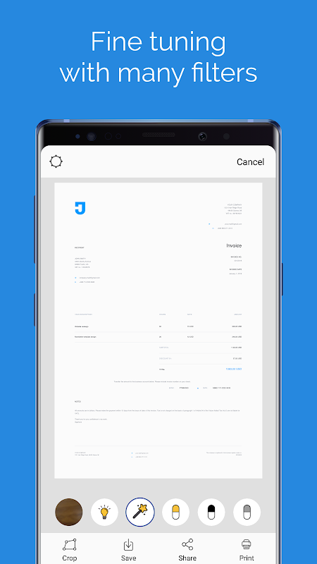 Instant Scanner is a handy scanner app that will turn your phone into powerful mobile scanner. Instantly scan, save and share any document in PDF or JPEG format.